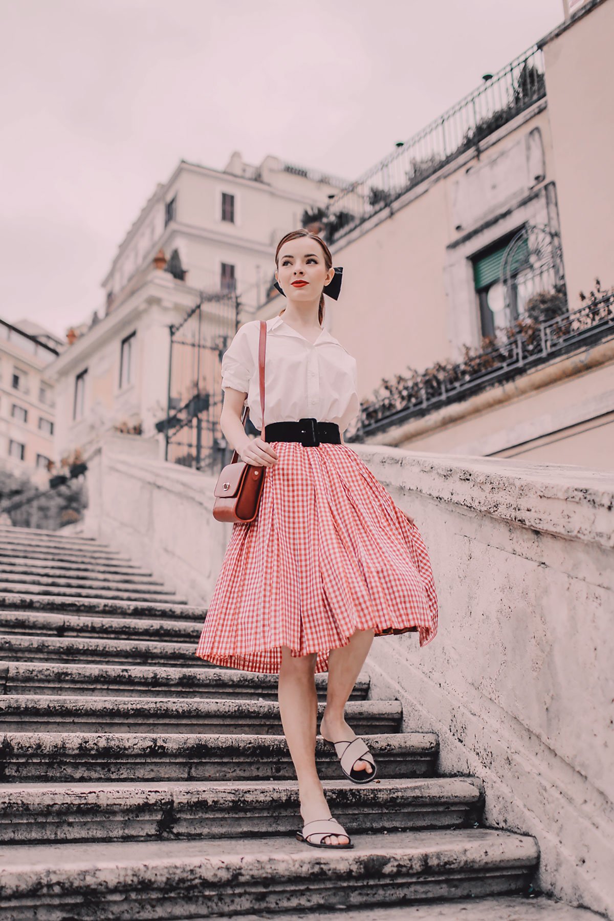 Rome has a way of making you feel like you’ve stepped onto the set of a classic film. The streets buzz with life, scooters weave effortlessly through traffic, and history greets you at every corner. My wardrobe for Rome leaned into that cinematic energy—effortless, but with small details that made me feel put-together as we wandered through ruins and piazzas.